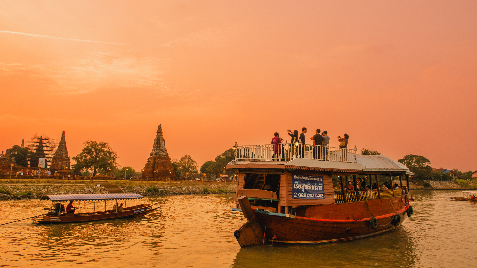 선셋 보트를 타고 50분 ~ 1시간 정도 둘러보고, 불 켜진 왓 차이왓타나람을 밖에서 구경하고 방콕으로 출발합니다.